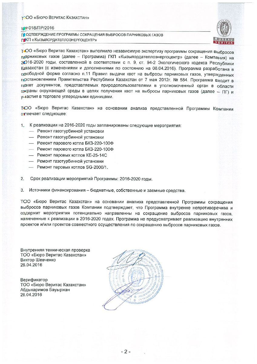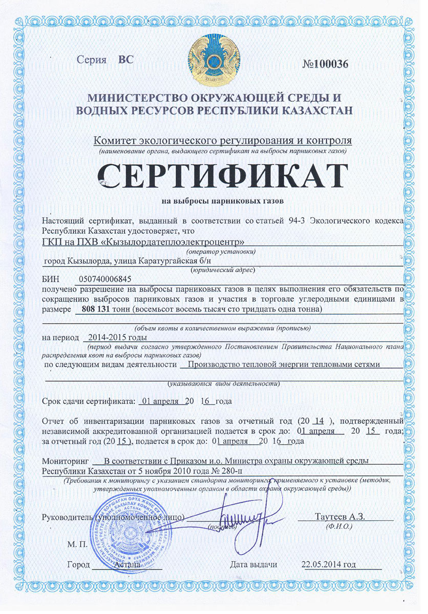 Сертификат на выбросы парниквых газов