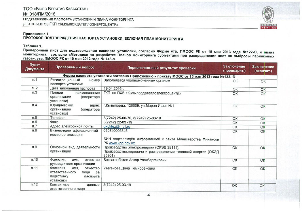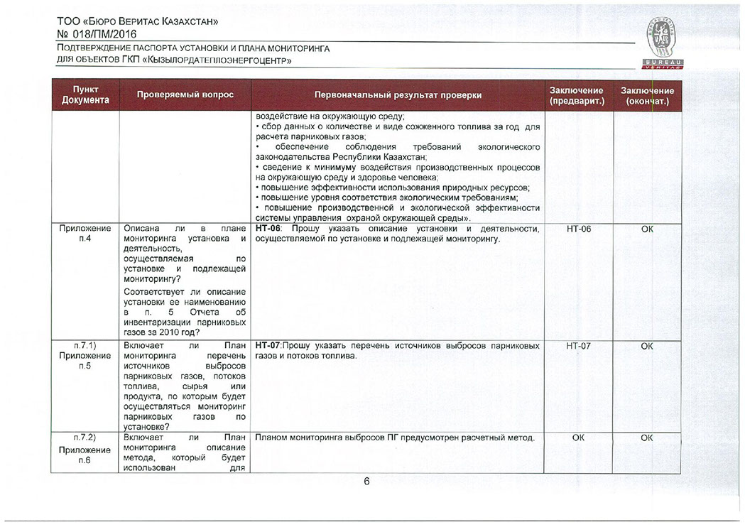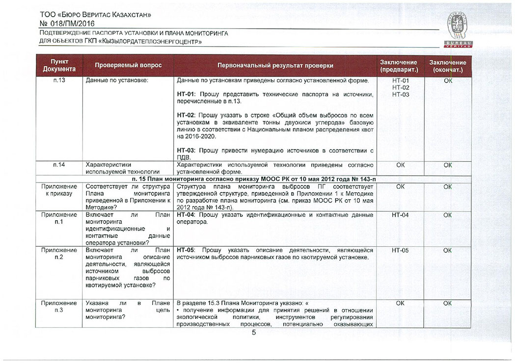 Заключение на паспорт установки
