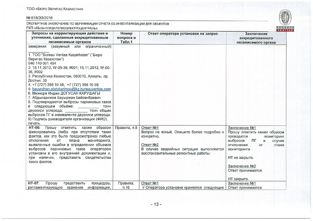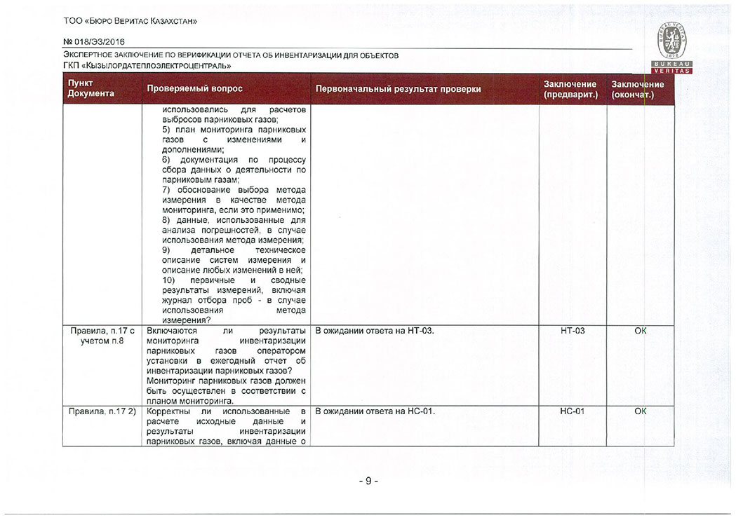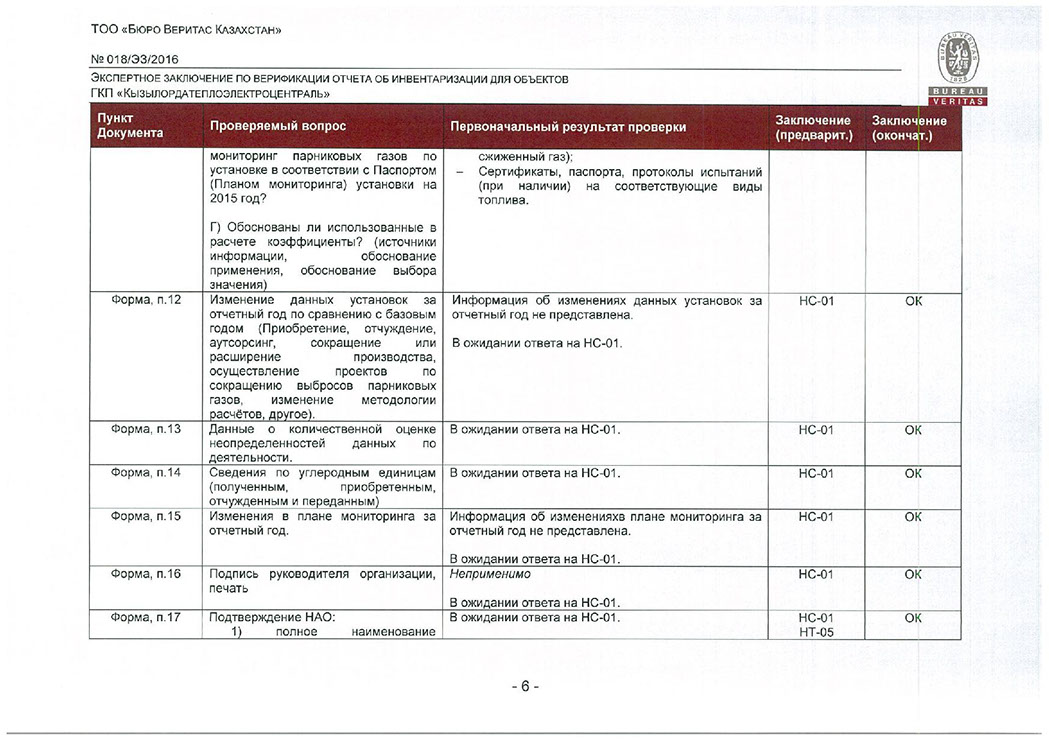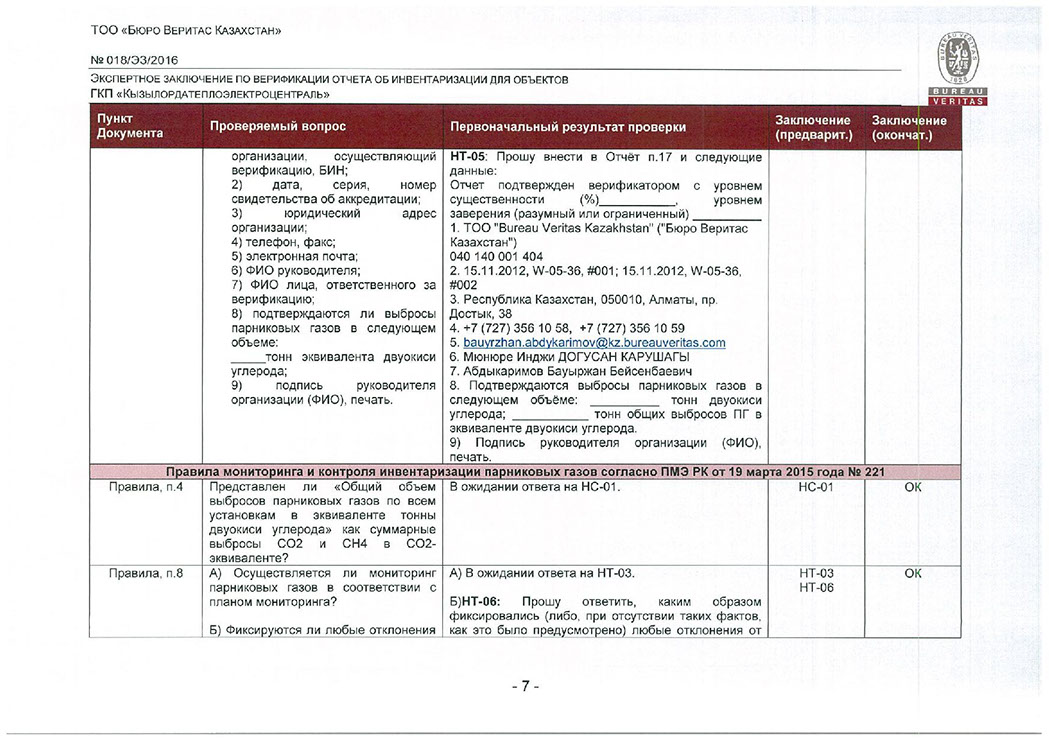 Заключение верификации по отчету